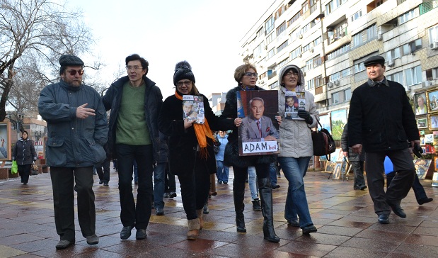 В понедельник, 12 января, главный редактор журнала ADAM bol Гульжан Ергалиева «прогулялась» с недоступным для нее и простых граждан главой государства по центру Алматы – Арбату. Эту акцию пришли поддержать несколько десятков человек – поддержать не только «адамболовцев», но и все независимые СМИ, а также право граждан на получение и распространение информации. Пусть даже неугодной режиму.