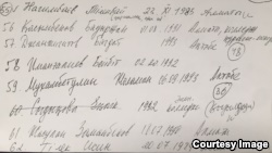 Фотокопия списка, представленного министром Мухамедиулы как доказательство того, что «Енлик Сыдыкова не поступила в 2011 году в Академию искусств».
