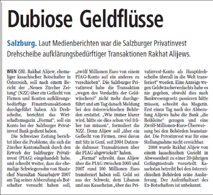 Salzburger Nachrichten am 19.07.2010 Share this on Facebook Tweet This! Get Shareaholic Read this article: Зальцбургский Приватинвест должен быть поворотным механизмом в разъяснении…
