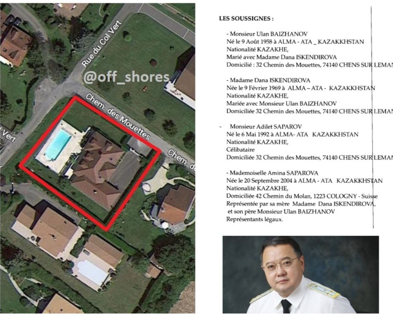 Связь с Кулибаевым Улан Байжанов поддерживает не только в Казахстане, но и за рубежом. Всего в 10 минутах езды от двух знаменитых вилл (https://t.me/off_shores/118) средней дочери и зятя Назарбаева в Женеве, во французской коммуне Шенс-сюр-Леман Байжанов купил роскошный особняк.