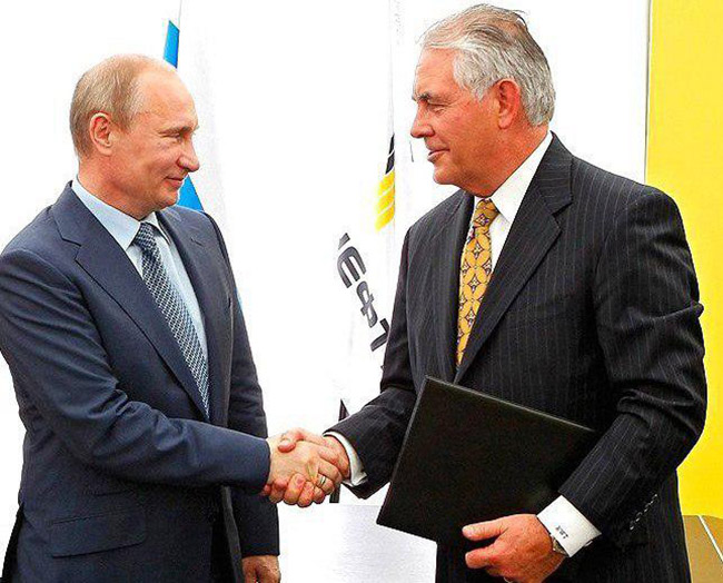 Это пре­крас­ное объ­яс­не­ние. Но есть одно «но». Как писал уже пор­тал KazakhSTAN 2.0, ника­ко­го  Каша­га­на  у Казах­ста­на нет, он есть у кон­сор­ци­у­ма инве­сто­ров, кото­ры­ми руко­во­дит в насто­я­щее вре­мя ком­па­ния ExxonMobil. Та самая, кото­рой руко­во­дил Рекс Тил­лер­сон еще до того, как занять пост госу­дар­ствен­но­го сек­ре­та­ря США (на фото с пре­зи­ден­том Рос­сии  в быт­ность пред­се­да­те­лем сове­та дирек­то­ров ExxonMobil).