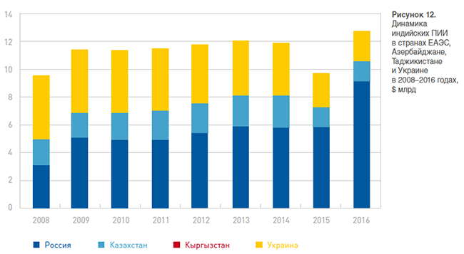 Резюмируя сказанное, отметим, что, как следует из доклада ЕАБР, на европейские страны приходится более 85% всех прямых капиталовложений Казахстана, а объем накопленных ПИИ Казахстана в странах Евразии вне СНГ в 2016 году составил почти $6.5 млрд. Из них $4.9 млрд прямых инвестиций было вложено в Румынию. Главным же инвестором в Казахстан по-прежнему является Китай.
