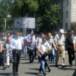 Отпра­вив­шу­ю­ся пеш­ком за несколь­ко квар­та­лов боль­шую груп­пу людей во гла­ве с орга­ни­за­то­ра­ми никто задер­жи­вать не стал. Лишь любо­пыт­ные про­хо­жие с удив­ле­ни­ем смот­ре­ли на людей с цве­та­ми и чер­но-голу­бы­ми лентами.