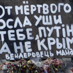 В последние дни в Киеве непогода, периодически идет дождь. Хмурые лица людей можно увидеть и в центре Киева. Здесь постоянно многолюдно, украинцы и иностранцы приходят, чтобы поклониться подвигу героев «Небесной сотни». И у мужчин, и у женщин на глазах слезы, спокойно о гибели героев никто говорить не может.
